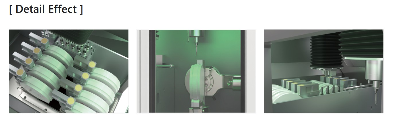 AMD-500DCs milling machine is a five-axis linkage automatic disc changing equipment. The equipment is matched with 8 disc changers, which can realize automatic disc changing for round-the-clock processing and production. With an intelligent fixture identification function, more trays can be added, and intelligent identification improves production efficiency Matching C-shaped fixtures, improves material utilization by 30%.