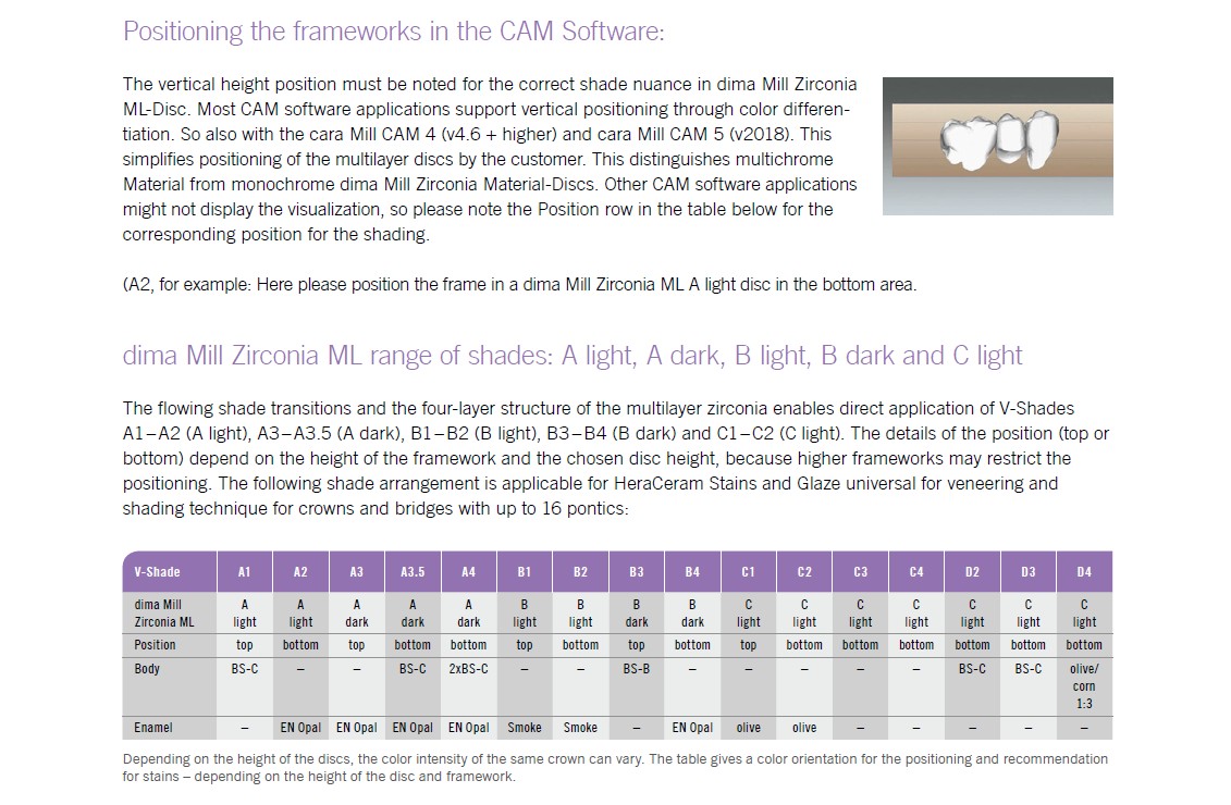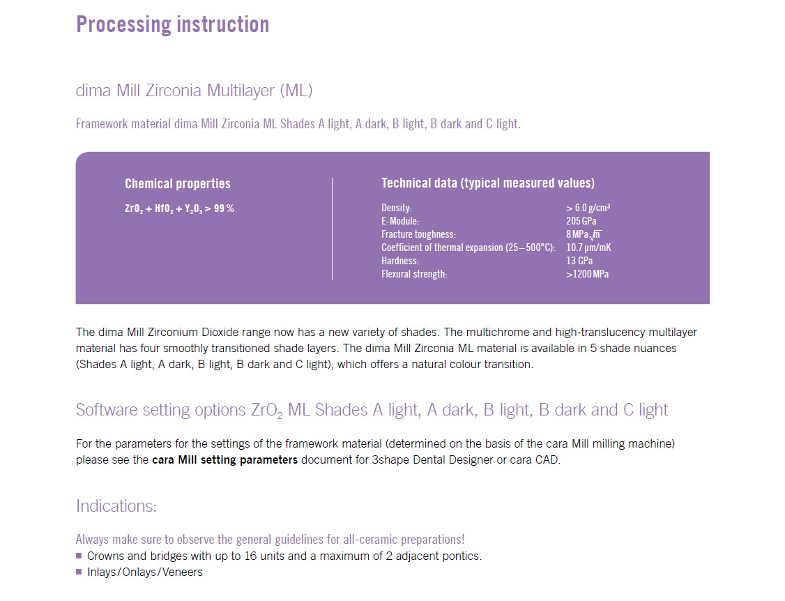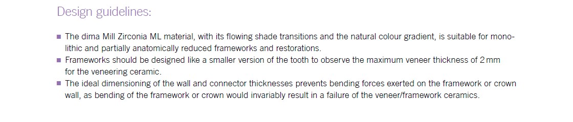 The dima Mill Zirconia ML material, with its flowing shade transitions and the natural colour gradient, is suitable for monolithic and partially anatomically