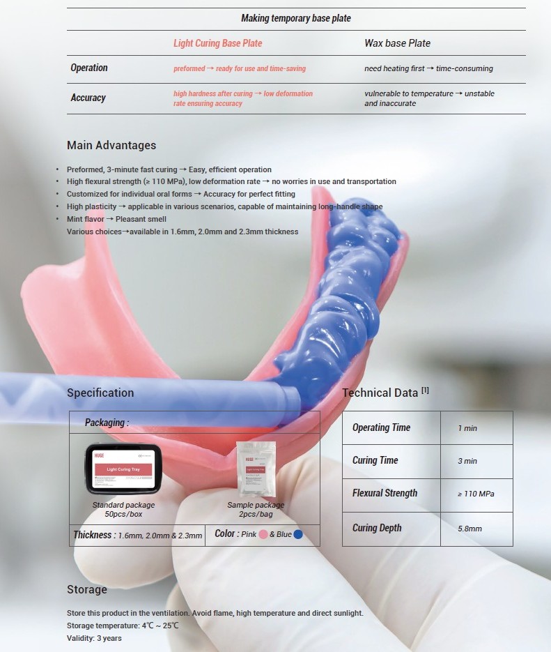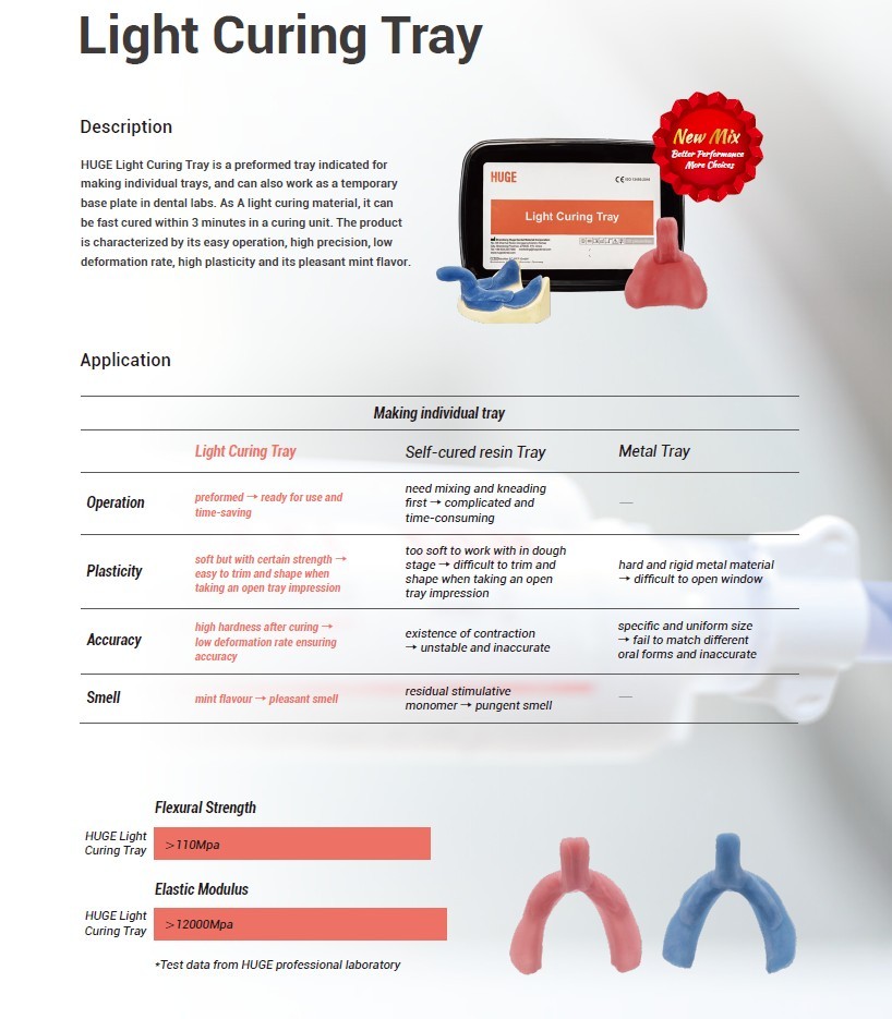 Light Curing Tray is a series of light curing resins indicated for
